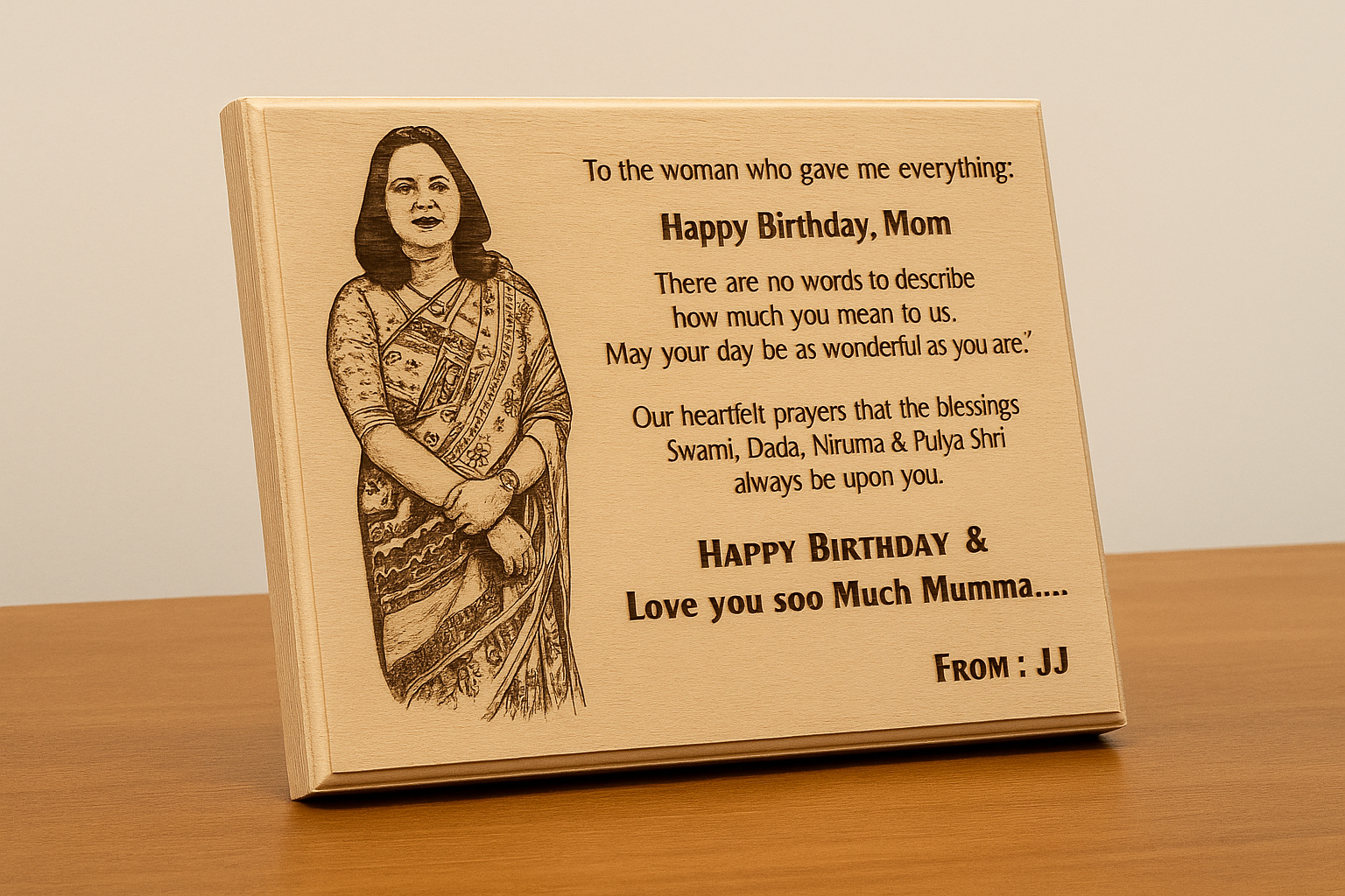 Preserve your cherished memories with this meticulously crafted laser-engraved wooden photo frame. Each piece features precision engraving that adds a personalized touch, transforming ordinary moments into meaningful keepsakes. The natural wood construction provides warmth and elegance, complementing any décor style while ensuring durability. Perfect for gifting or displaying your most treasured photographs, this frame combines artisanal craftsmanship with modern engraving technology. A timeless addition to any home or office space.